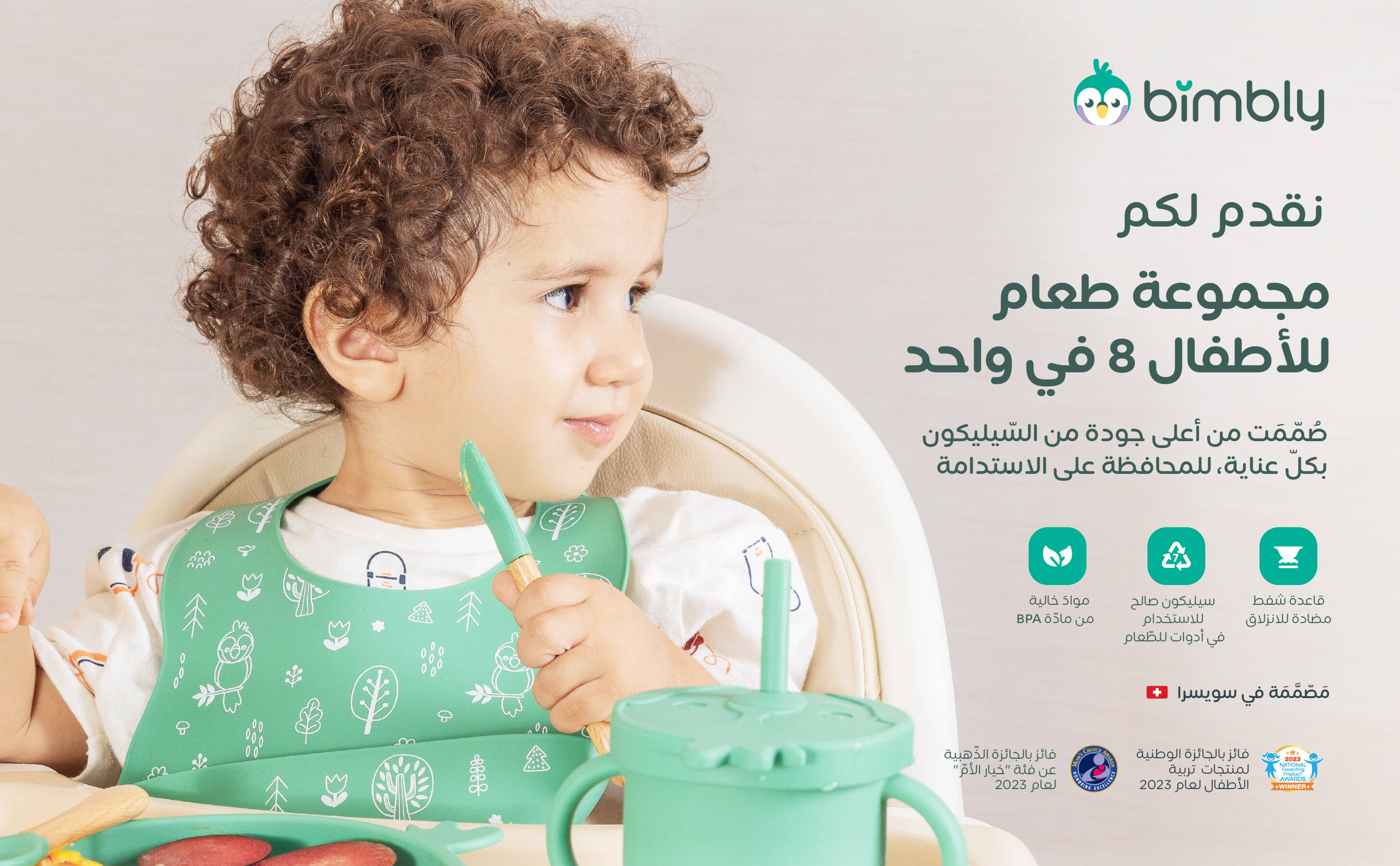 كل والدين يحتاجان إلى بطل وقت الوجبات يمكنهما الاعتماد عليه. طقم التغذية السيليكوني بيمبلي 8 في 1 هو الحل المثالي! يتميز بتصميمه الجذاب، وبنيته الناعمة المصنوعة من السيليكون، والقطع المتعددة. هذا الطقم يوفر فرصة لجعل وقت الوجبات ممتعًا، خاليًا من الفوضى، ومساهمًا في تنمية طفلكم!