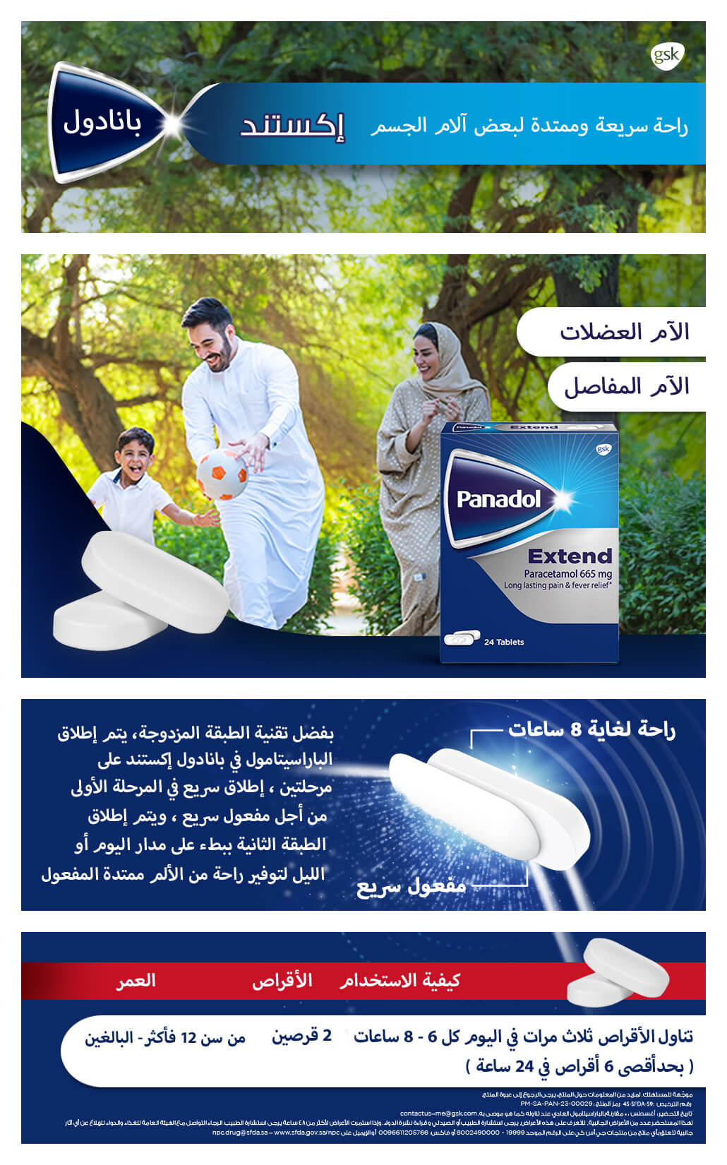 مكونات بنادول اكستند :باراسيتامول 665 مجم.