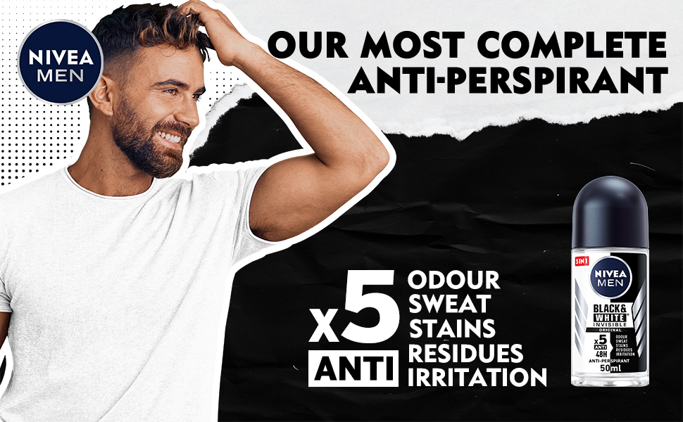 NIVEA MEN Black & White Invisible Original Antiperspirant Deodorant is a unique formula that protects your clothes from white marks and yellow staining – black stays black and white stays white for longer. Formulated with a reliable 48hour antiperspirant protection, NIVEA MEN Black & White Invisible Original Antiperspirant Deodorant leaves your skin feeling clean and fresh while keeping away sweat and body odour. At NIVEA we’ve got a vast selection of soaps, shower gels, bath additives, deodorants, creams, lotions, milks and a lot more. If you’re looking for products to help improve the healthy look or glow of your skin, we’ve got you covered! Take a look now and discover the ideal NIVEA product for your needs and preferences. We have products for both men and women including shaving items and deodorants for all of your personal hygiene requirements. NIVEA MEN, it starts with you!